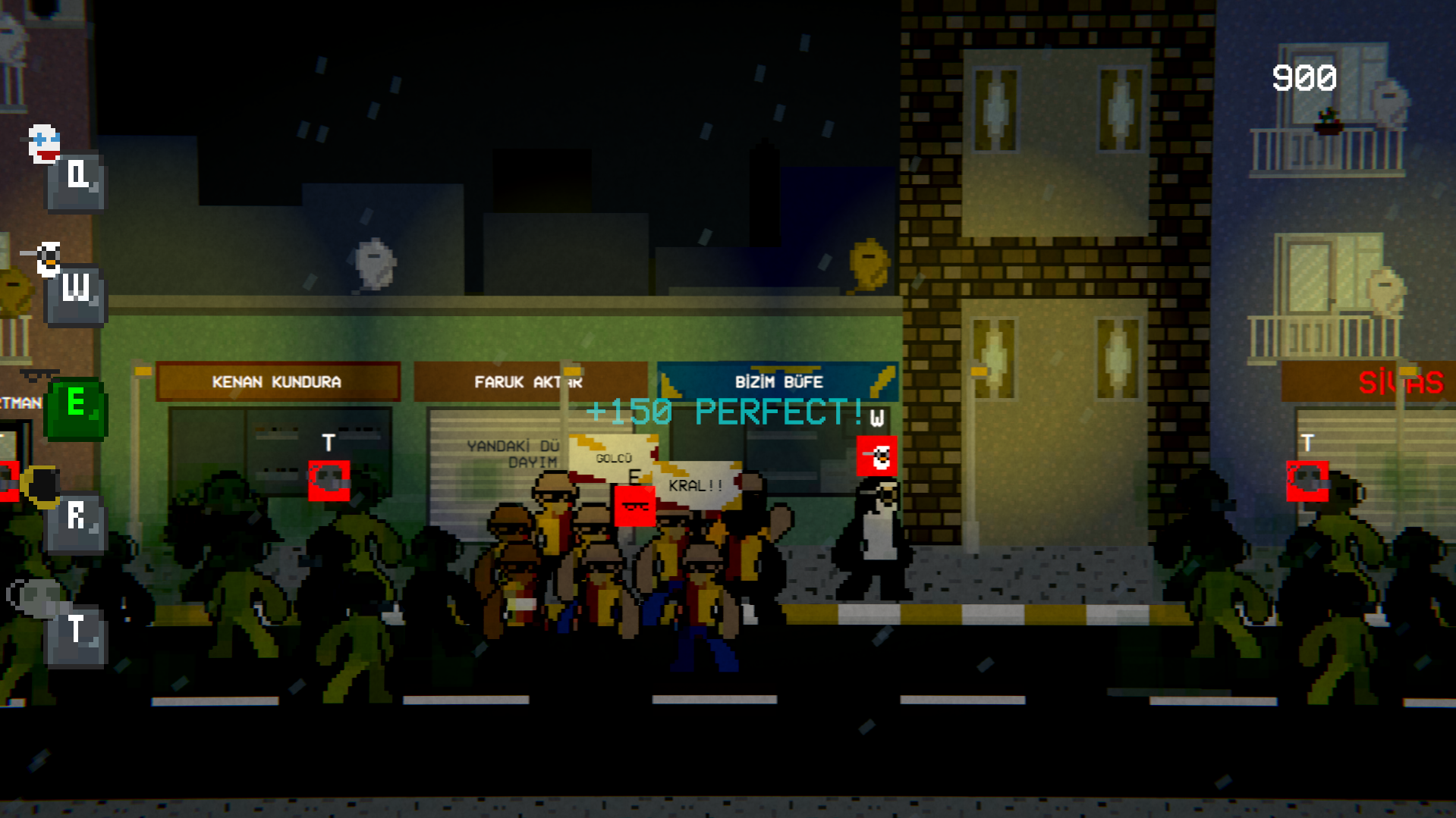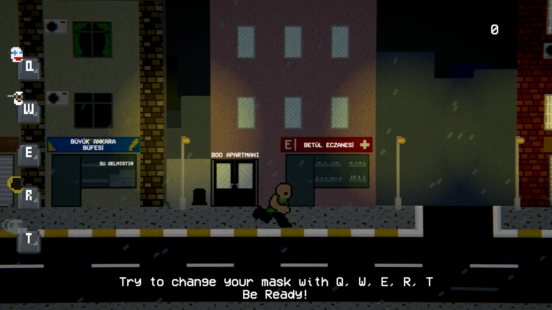 'Mask Runner' is a rhythm game. The running player tries to wear the mask they need to wear in time with the music's rhythm by adapting to the groups that appear in front of them. You can see the keys needed to put on the masks.